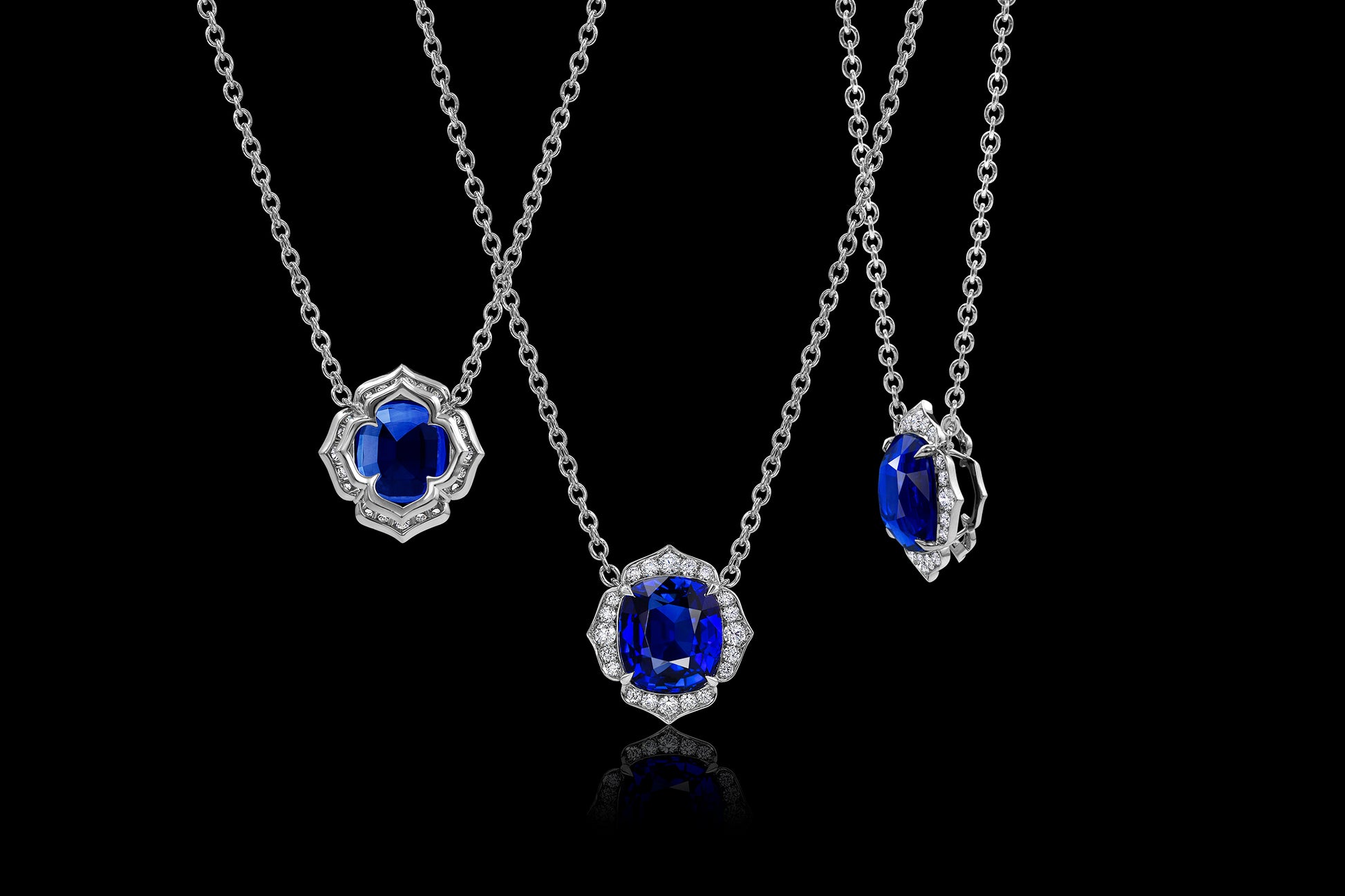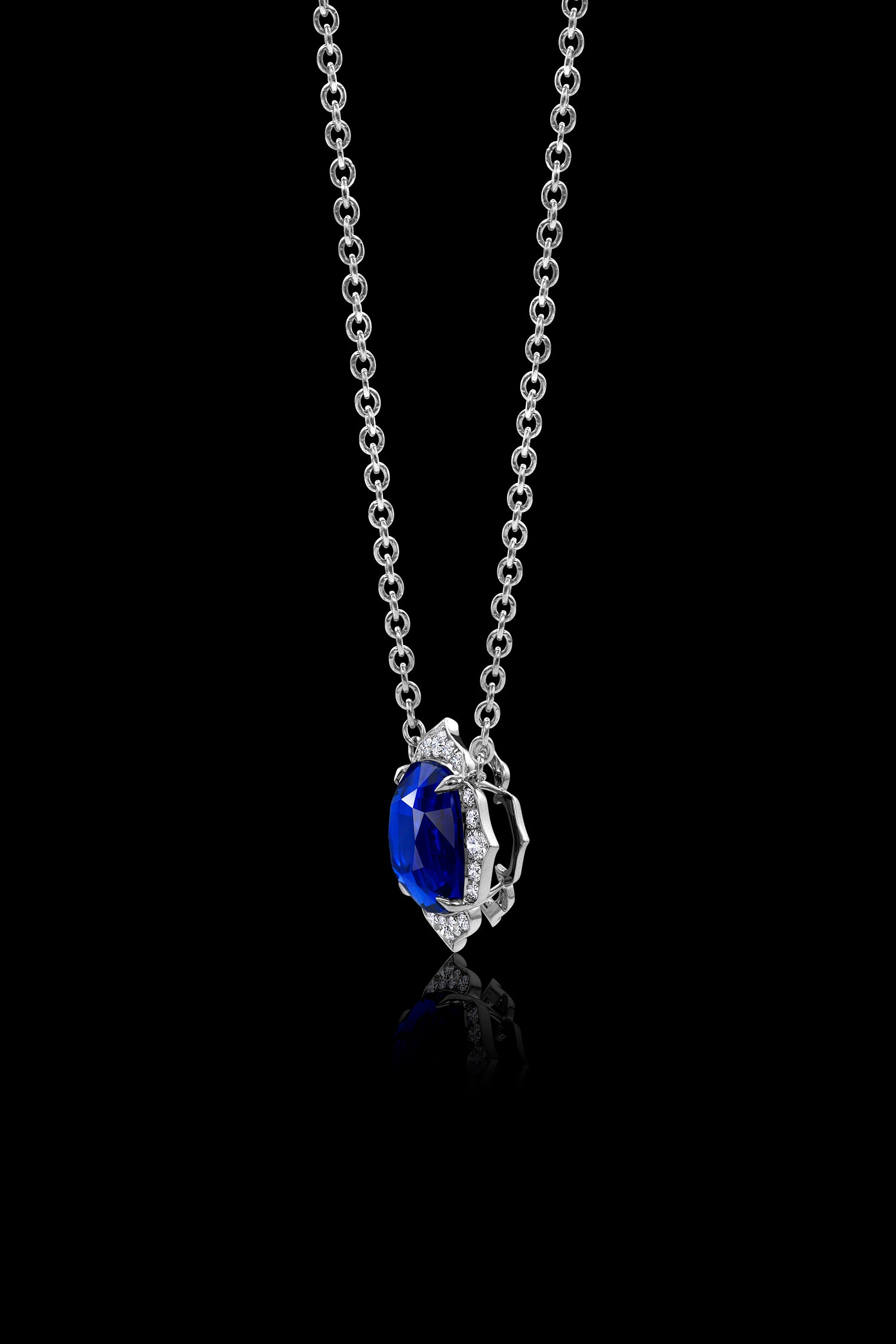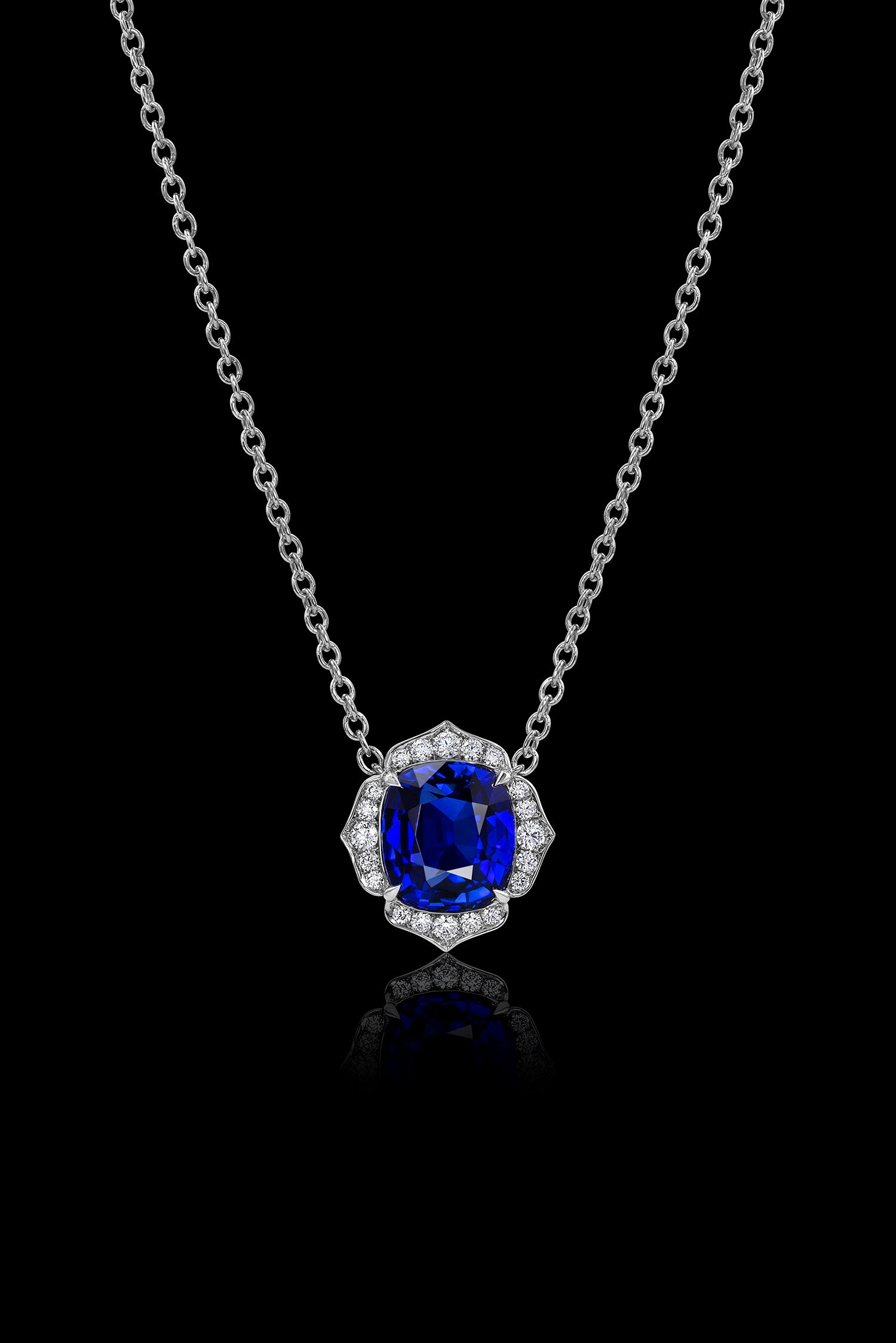 Blue Sapphire Flower Pendant Set in Platinum & Accented with Diamonds